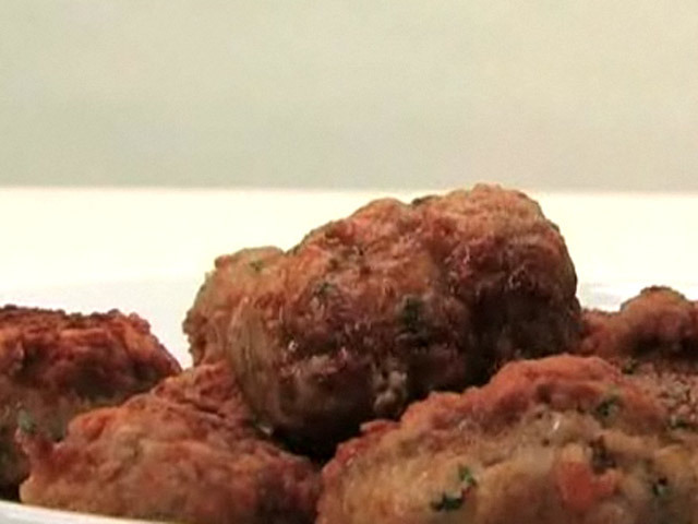 Рецепт испанской кухни.На 4 порции:фарш — 200-300 гр;яйцо — 1 штука;мускатный орех — 1 штука;вустершиский соус, молоко, мята, петрушка, соль, черный перец, панировочные сухари, мука, оливковое масло.