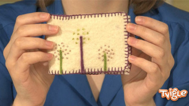 Ольга Павлова делает из войлока обложку на документы и декорирует её при помощи ниток и бисера.